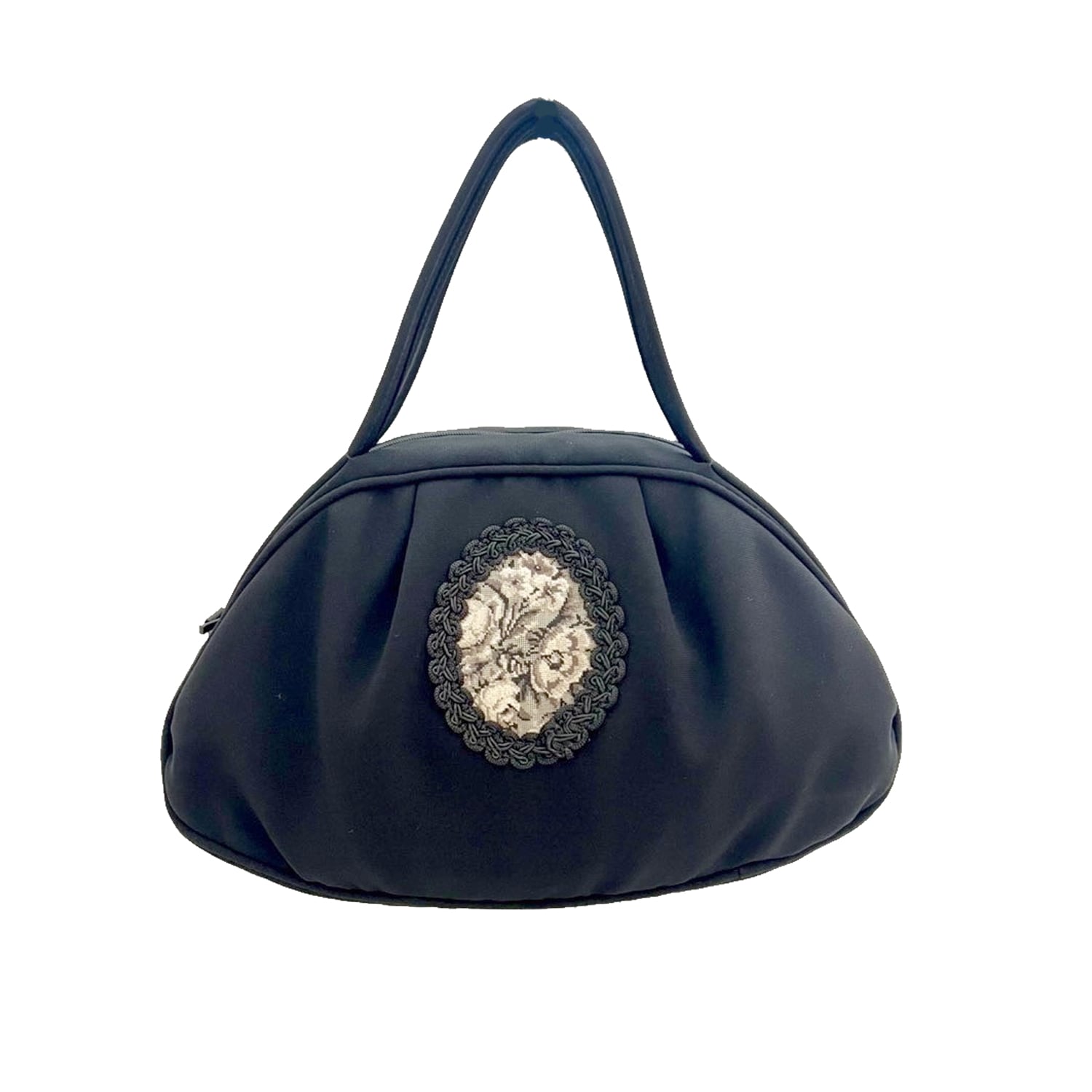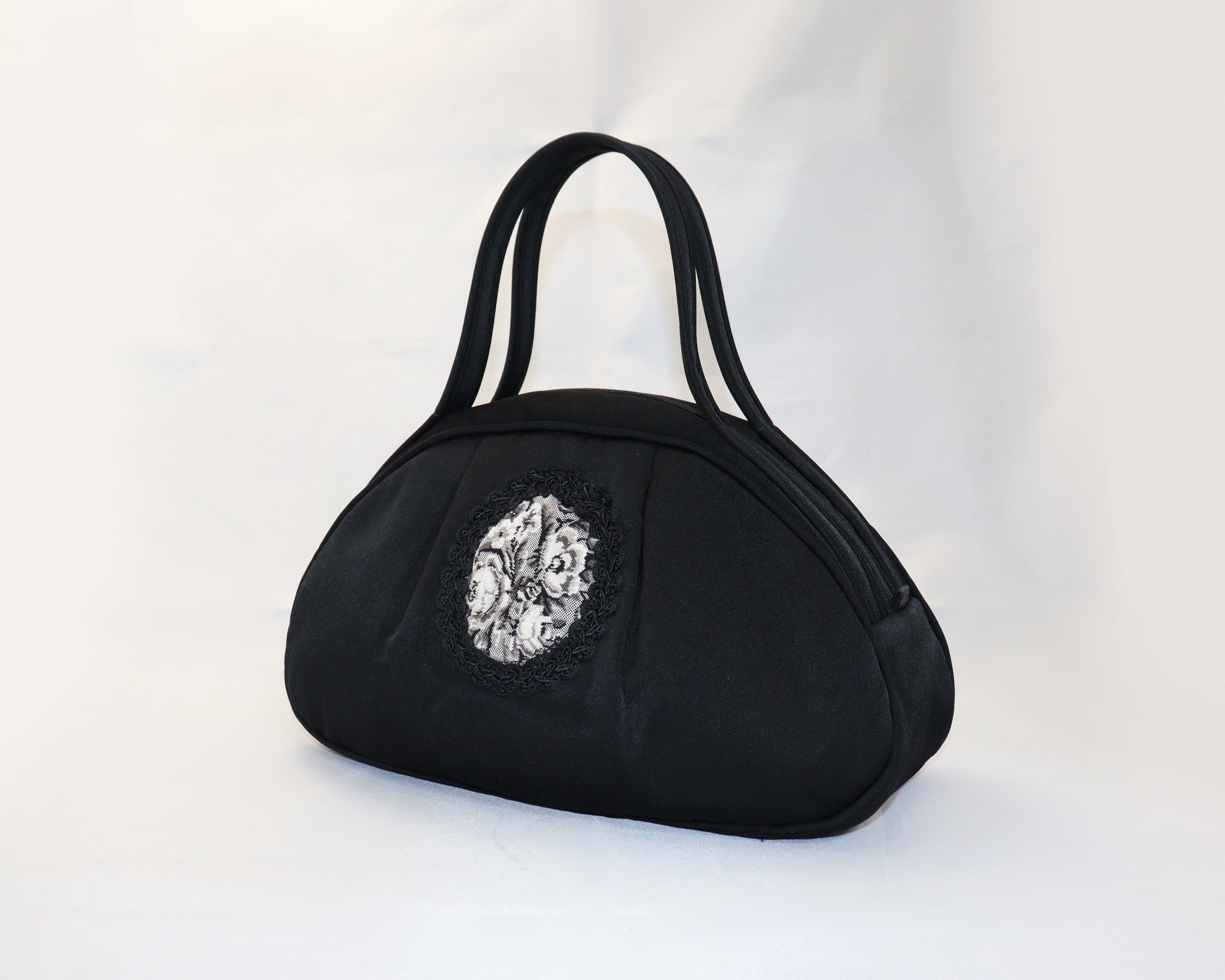 日本の工場で1点1点丁寧に仕上げた、長くご愛用いただけるモノバッグ。プチポアン刺繍の気品を詰め込み、使う度に愛着のわくデザインに仕上げました。モノトーンカラーの上品なプチポアンをワンポイントとしてあしらい、周囲を上質なブレードで縁取ることで、存在感のあるデザインに。高級感が出るよう、プチポアンの柄も厳選致しました。本体の素材には、深みのある黒とシルクのような光沢を持つ国産のトリアセテート素材「ソアロン」を使用。女性らしい優しいフォルムで、冠婚葬祭やお出かけなど様々なシーンに対応できるバッグ。布製であるため、正式なフォーマルシーンにもマナーに沿ってお持ちいただけ軽さも魅力。日常使いでもご使用いただけます。シンプルながら飽きのこないデザインで、世代を超えてお使いいただきたいという気持ちで、仕上げました。