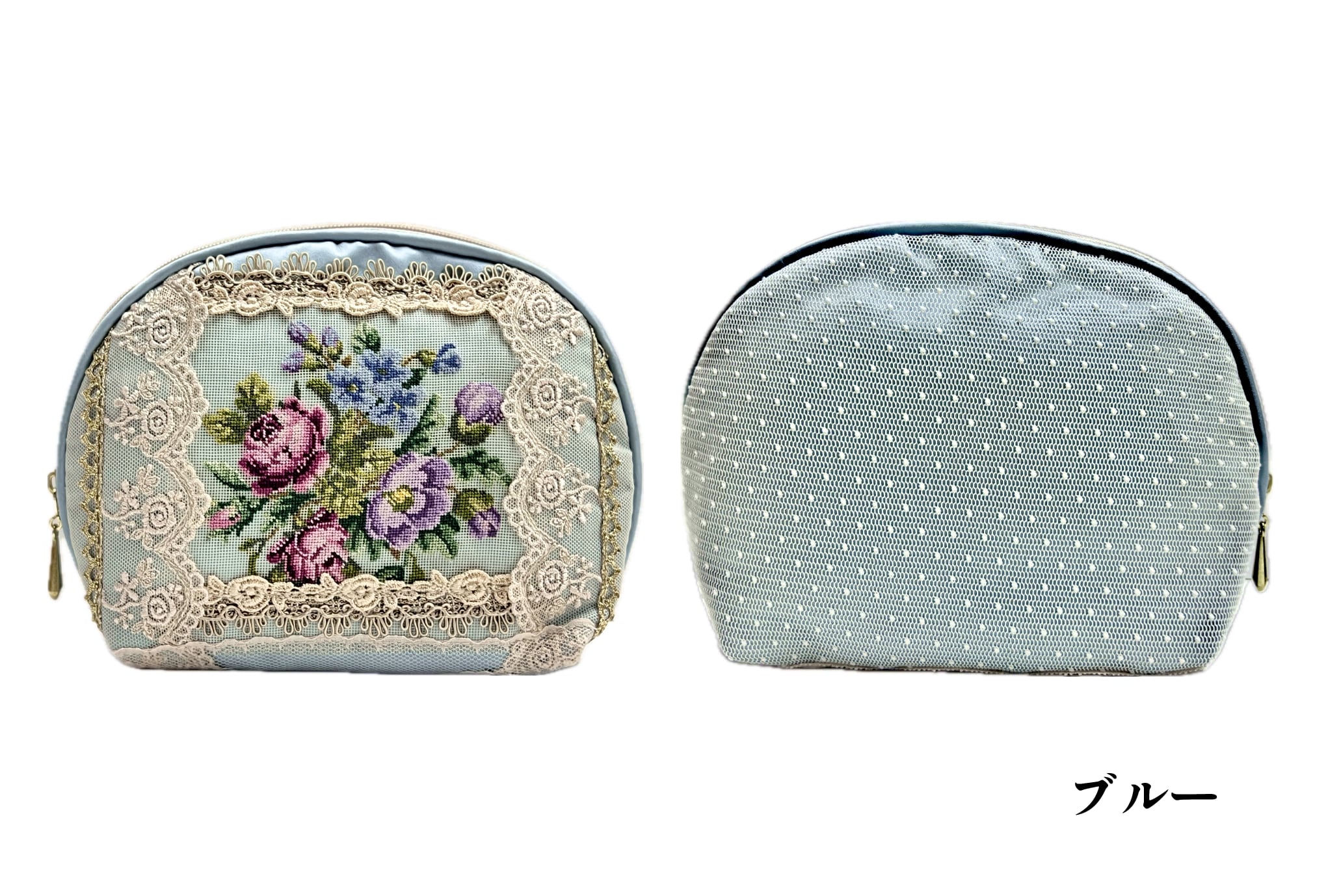 ハプスブルク家から興隆した芸術的なプチポアン刺繍を使用し、プチポアンとレースを組み合わせた、今までにない、プチポアンのポーチ。