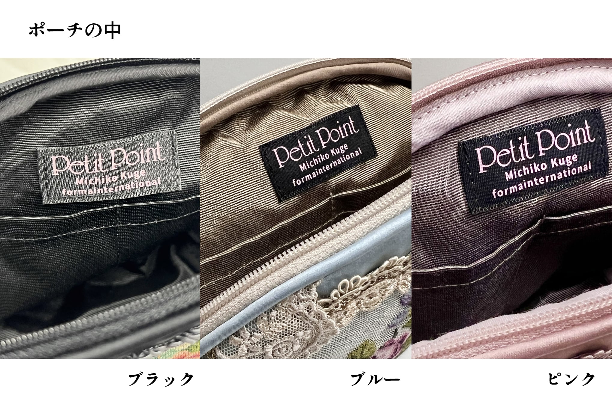 ハプスブルク家から興隆した芸術的なプチポアン刺繍を使用し、プチポアンとレースを組み合わせた、今までにない、プチポアンのポーチ。