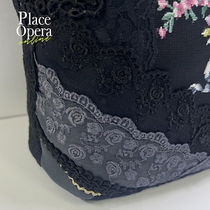 様々なレースを使い、重厚感がありながらも大変軽く仕上がっており、気軽なお出掛けから観劇などの特別な日まで。多くのシーンで持っていただきたいバッグです。