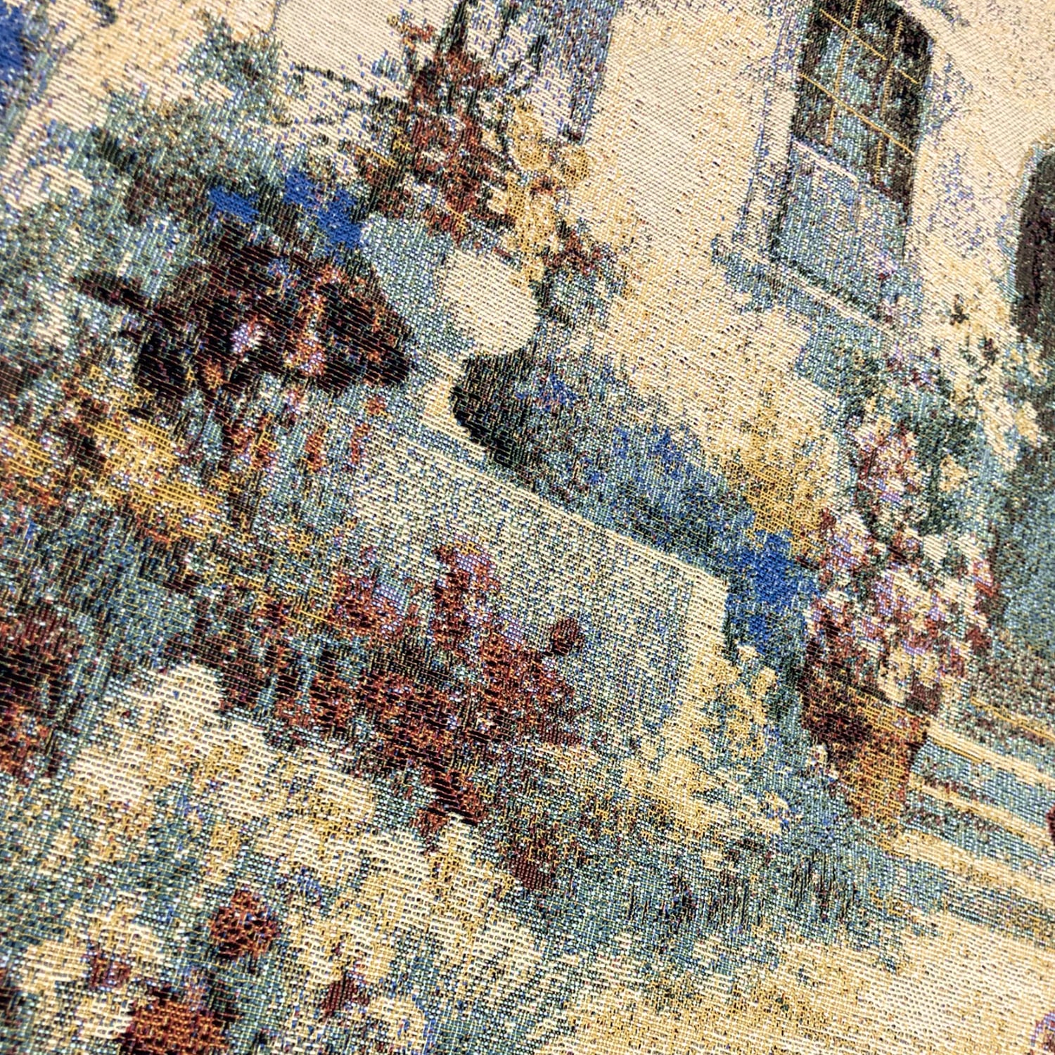 「パティオ」地中海を望む南フランスの別荘(ヴィラ)の、パティオと呼ばれる美しい中庭をタペストリーとして織り上げた。