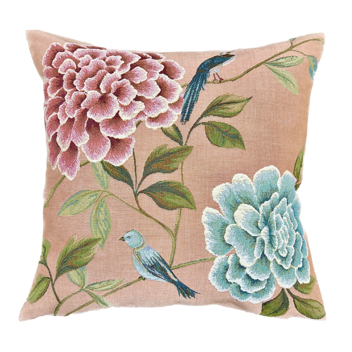 商品名:【クッション・カバー48cm】ザクロの花と鳥/ピンク地